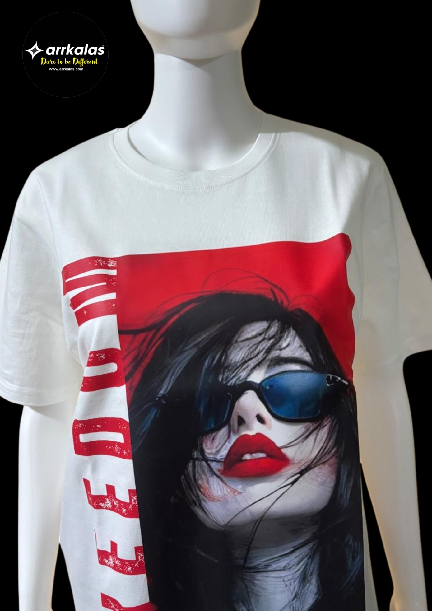 - Timeless Design: The classic FREEDOM white color is always in style, making it the perfect canvas for any look. Pair it with jeans, shorts, or even layer it under a jacket – the possibilities are endless.