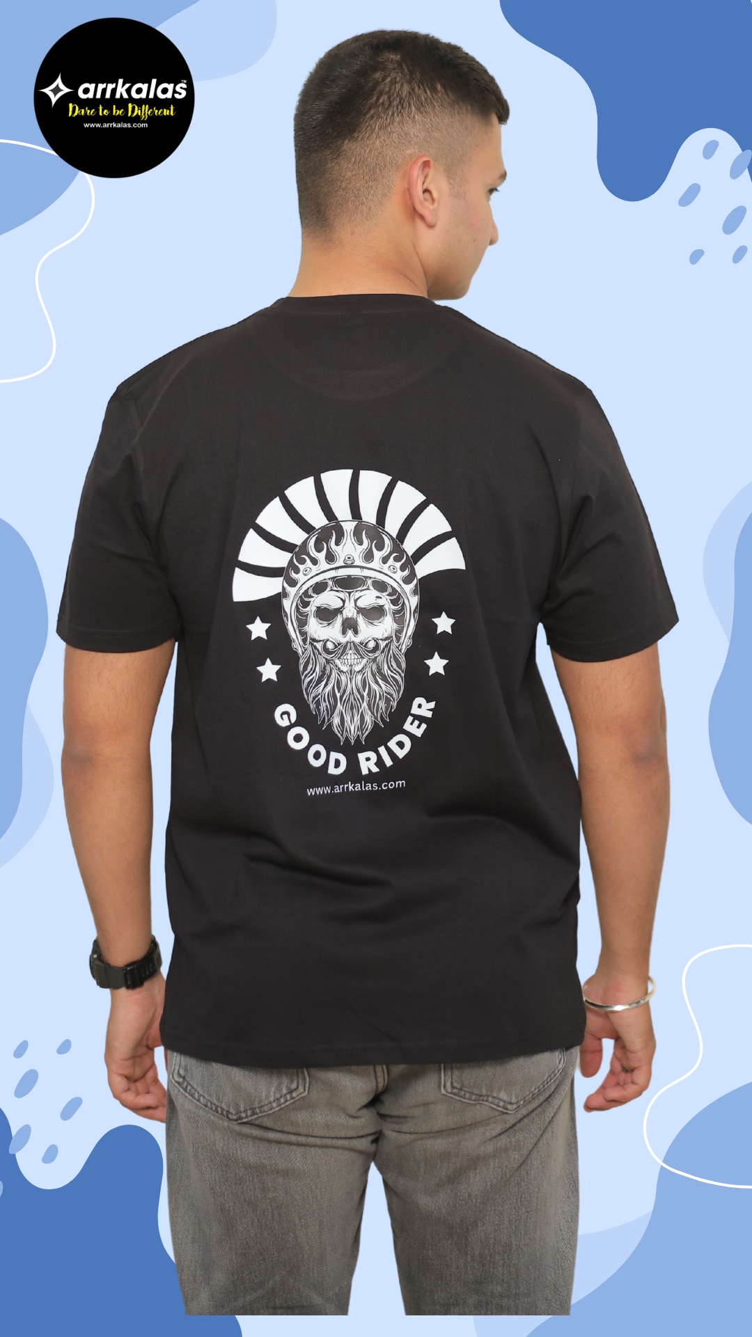 - Timeless Design: The classic GOOD RIDER SKULL- BLACK color is always in style, making it the perfect canvas for any look. Pair it with jeans, shorts, or even layer it under a jacket – the possibilities are endless.