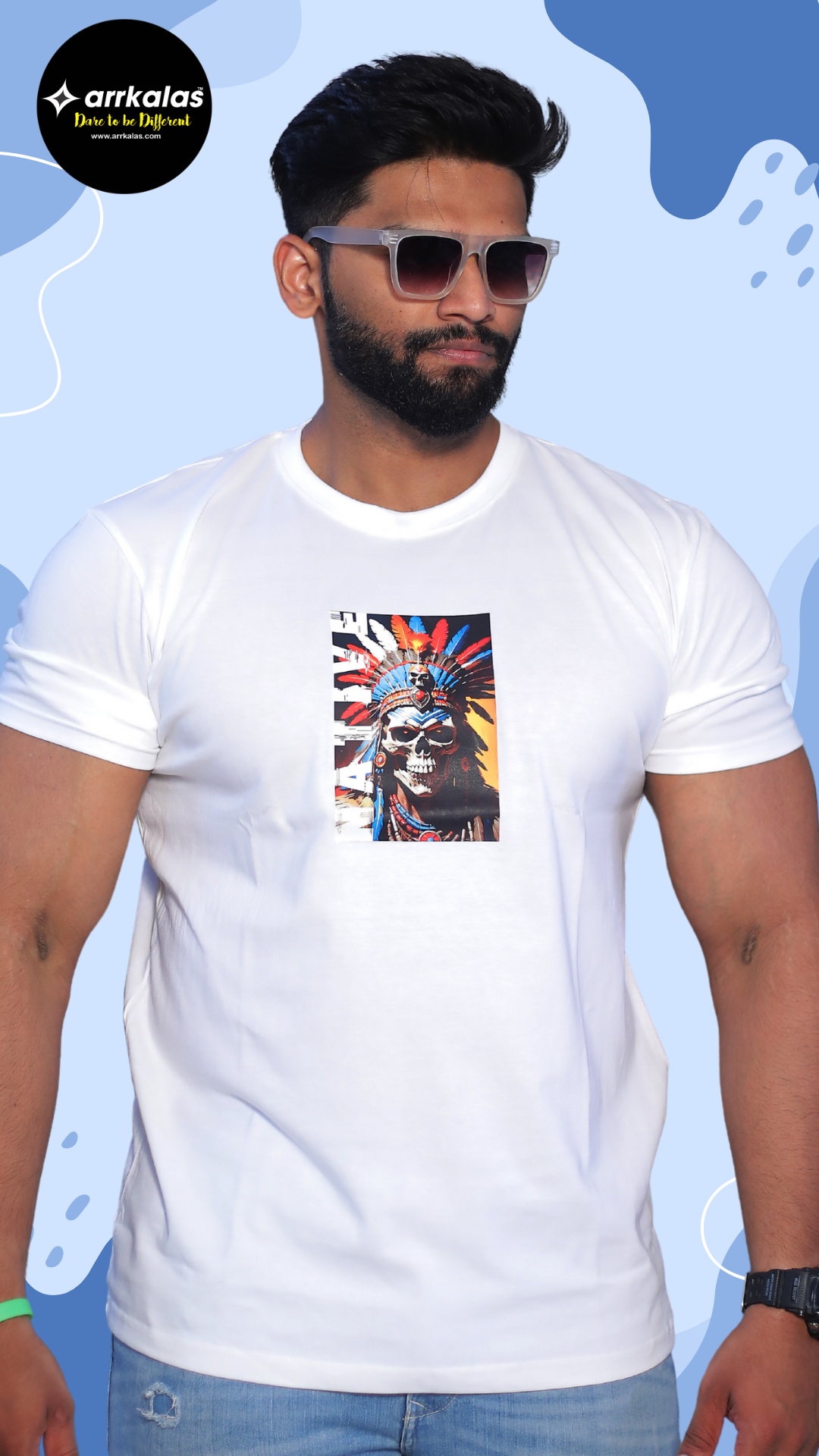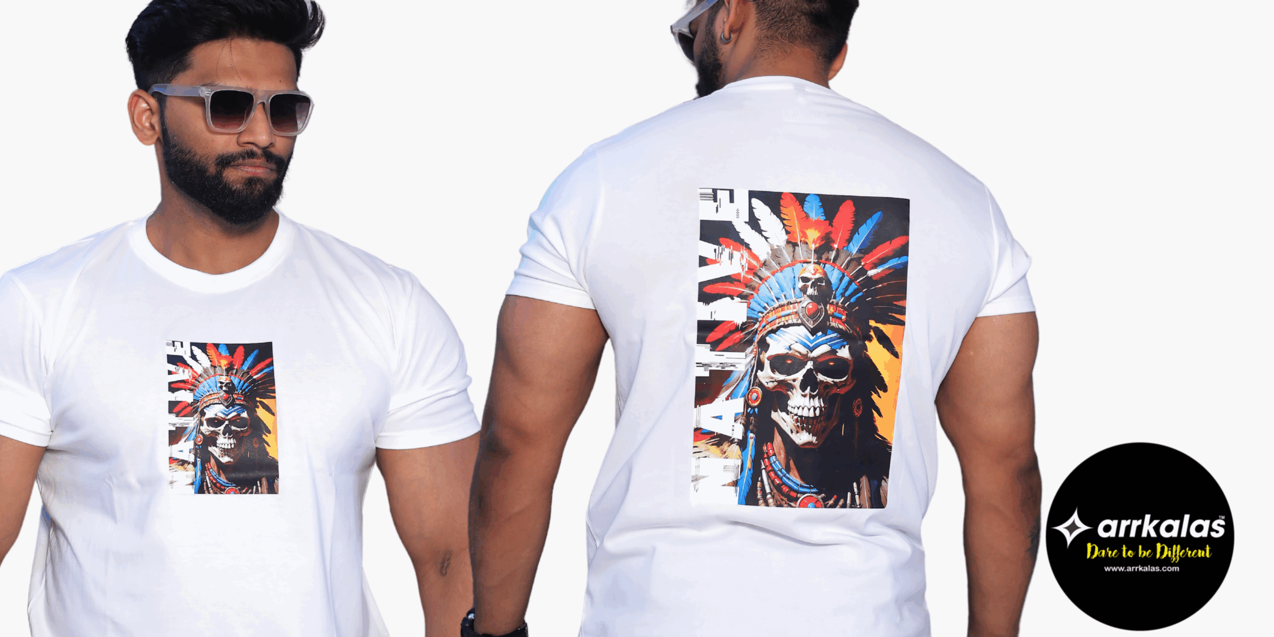 - Sustainable Style: Crafted with environmentally friendly processes, the Arrkalas NATIVE RED-INDIAN SKULL (WHITE) T-Shirt combines style with sustainability, so you can look good and feel good.